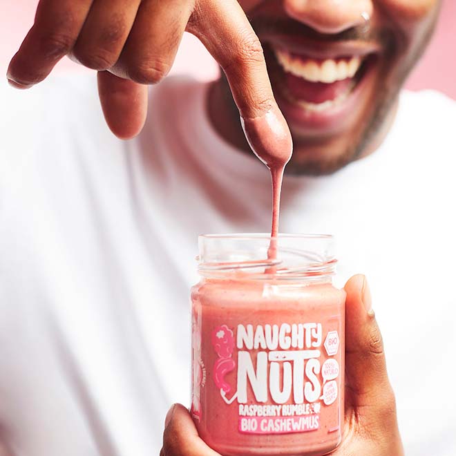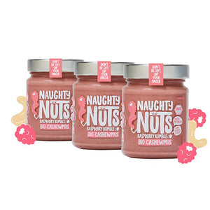 Welcome to pink nutty heaven Naughties! Besonders smoothes Cashewmus, natürlich süße der Agave und fruchtige Himbeere bringen Nussmus auf ein nie dagewesenes Level. Jeder Löffel dieses unwiderstehlich protein- und ballaststoffreichen Himbeer-Tastes verwandelt unser Nussversum in leuchtendes Pink!
