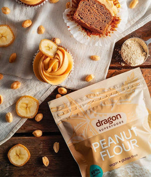 Genieße unser Bio Erdnussmehl von Dragon Superfoods, hergestellt aus biologischen Erdnüssen durch einen schonenden Ölextraktionsprozess. Natürlich glutenfrei und reich an pflanzlichem Protein sowie Ballaststoffen. Erdnussmehl enthält auch Mineralien wie Magnesium und Kalzium. Sein charakteristisches nussiges Aroma macht es zu einer idealen Ergänzung für Desserts, Snacks oder Smoothies.